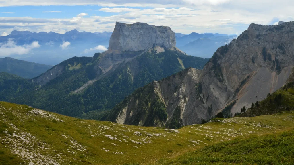 Le Mont Aiguille dresse ses 2 086 mètres dans le Trièves, sur la commune de Chichilianne. Cette dent calcaire détachée du Vercors fascine depuis le Moyen Âge, connue sous le nom de « Mont Inaccessible« . La première ascension en 1492 par Antoine de Ville marque la naissance de l’alpinisme.