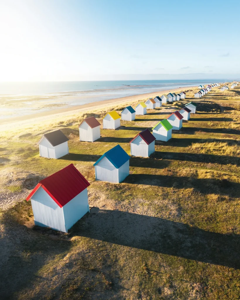 Tout près de Coutainville, Regnéville-sur-Mer mêle histoire maritime et patrimoine avec son château médiéval en ruine. À Hauteville-sur-Mer, la longue plage de sable accueille les familles pour la baignade et la pêche à pied. Gouville-sur-Mer déroule ses cabines multicolores sur les dunes face à l’océan. Plus discret, Blainville-sur-Mer conserve son église et ses sentiers tournés vers l’estran et les prés salés.