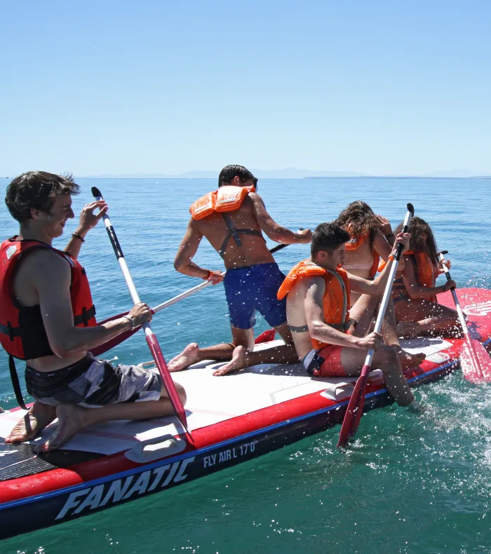 Au coeur du parc naturel régional La Narbonnaise, abordez le ride en méditerranée, entre le lac et la plage. 2 séances de wakeboard, 1 séance de stand up paddle, 1 séance de char à voile, 1 séance de parc aqualudique, beach sports, terrain de beach volley, animations, grands jeux, veillées.