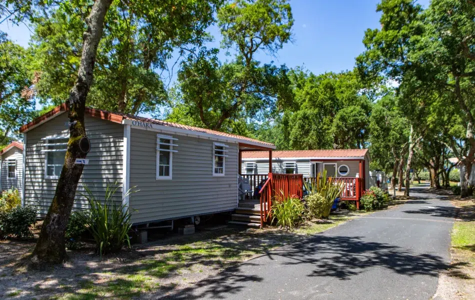 Vous pourrez réserver votre mobile-home, appartement, mobile-home toilé ou cabane, Sauterelle et Bora-bora.