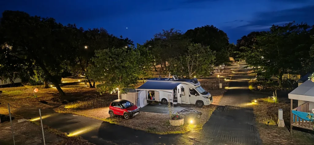 Sur certains campings, le nombre de luminaires semble excessif et leur implantation n’est pas toujours optimale. Afin de garantir la sécurité et la conformité des installations, toute intervention sur l’implantation des lampes par les campeurs est strictement interdite.
