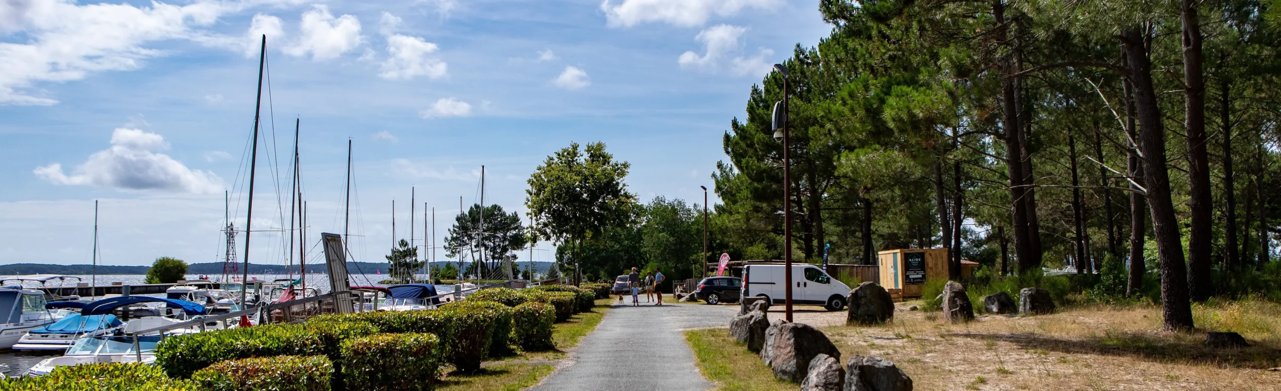 À Lacanau-ville, prendre la route du port, et au bout, tourner à droite, le camping est à droite 200 m plus loin sur la route qui longe le lac.