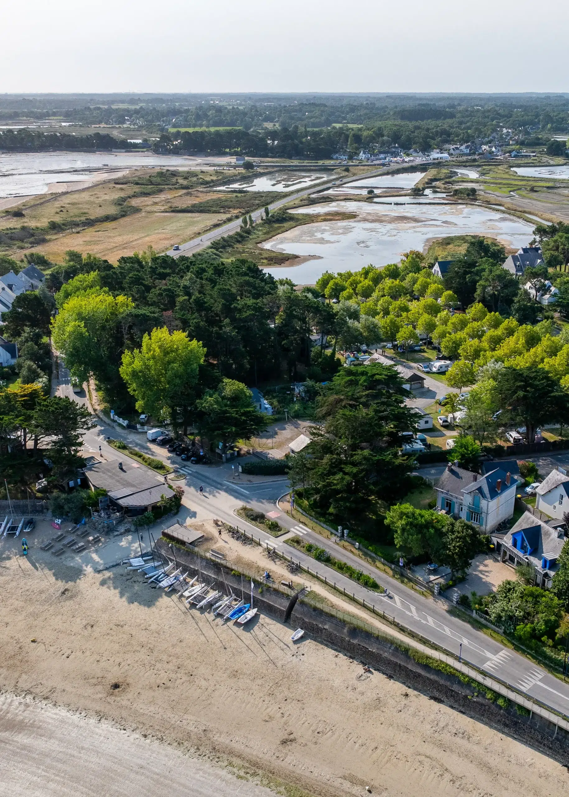 Souvent appelée la « petite Méditerranée », la plage de Pont Mahé s’étend en arc de cercle dans une baie protégée. Ses eaux peu profondes et chaudes en été la rendent particulièrement appréciée des familles. Les amateurs de glisse s’y retrouvent aussi pour pratiquer la planche à voile, le kitesurf ou le paddle. Classée Natura 2000, la baie de Pont-mahé possède l’un des rares espaces dunaires du département qu’il faut absolument protéger. À l’arrière-plage, les marais offrent une transition vers un paysage de dunes et de pins. Les oiseaux migrateurs fréquentent régulièrement ces zones humides. Rejoignez en 25 minutes cette « Méditerranée de l’Ouest » depuis votre camping en Loire-Atlantique.
