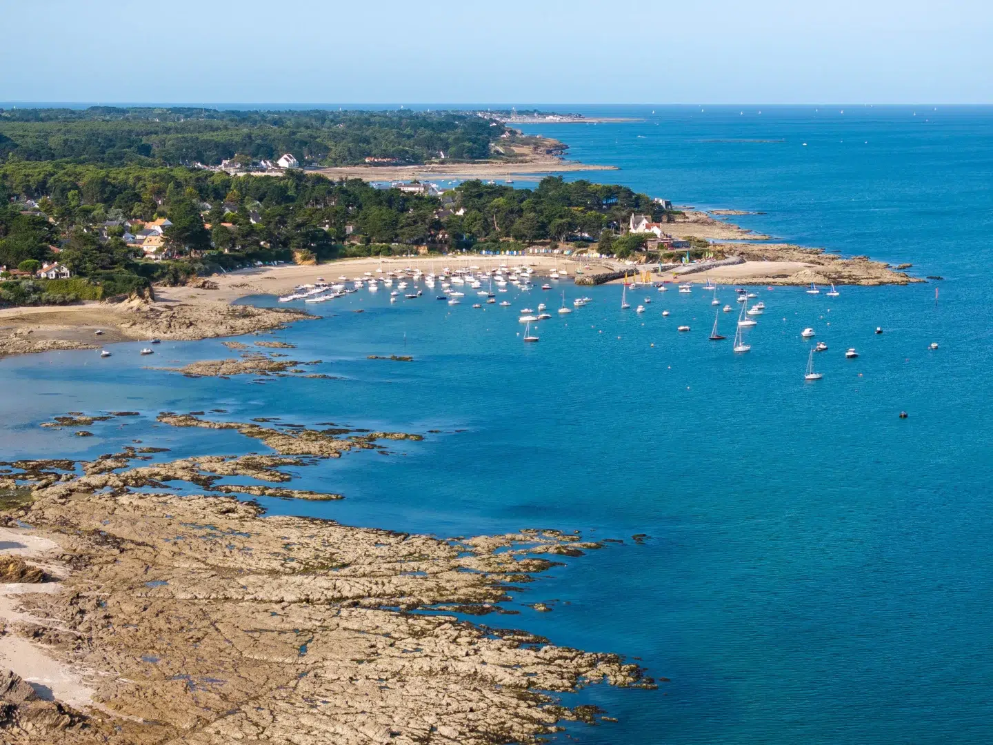 À 15 minutes de route, Piriac-sur-Mer, labellisée « Petite cité de caractère », séduit par son port animé où s’amarrent voiliers et bateaux de pêche. Le bourg concentre un patrimoine singulier : maisons en granit, encadrements sculptés, venelles fleuries et petites places bordées de cafés. La station doit sa renommée aux écrivains venus s’y inspirer, dont Zola et Daudet. En empruntant le sentier côtier, le regard embrasse falaises, criques rocheuses et plages abritées, propices à la baignade. Depuis le port de Piriac, on aperçoit l’île Dumet, seule île maritime de Loire-Atlantique, classée réserve naturelle et accessible uniquement par bateau. Piriac est une étape incontournable à découvrir depuis votre camping guérandais (8 km).