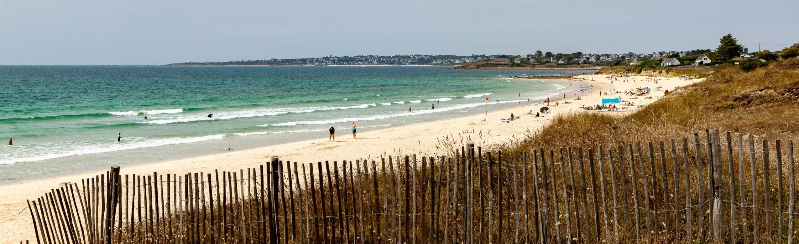 La plage de Kersiny déploie un kilomètre de sable bordé de dunes. Plus sauvage, sans poste de secours, elle révèle à marée basse ses rochers peuplés de crabes et bigorneaux, paradis discret des petits explorateurs et des amateurs de nature brute.