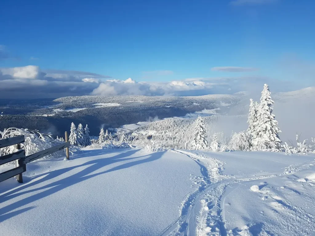 Les Hautes-Combes composent un vaste plateau montagneux entre 900 et 1 545 m, incluant des villages comme La Pesse, Les Moussières, Bellecombe. Ce territoire offre des itinéraires de randonnée estivale, des forêts de sapins et des points de vue remarquables sur La borne au lion et le lac de l’Embouteilleux. En hiver, Les Hautes-Combes se transforment en domaine nordique, avec ski de fond et raquettes sur des pistes qui relient les villages. Comptez 40 minutes de route depuis votre camping à Prémanon pour rejoindre ces combes souvent comparé à un petit Canada. Partez au petit matin pour savourer l’ambiance calme et le panorama enchanteur sur les crêtes jurassiennes.
