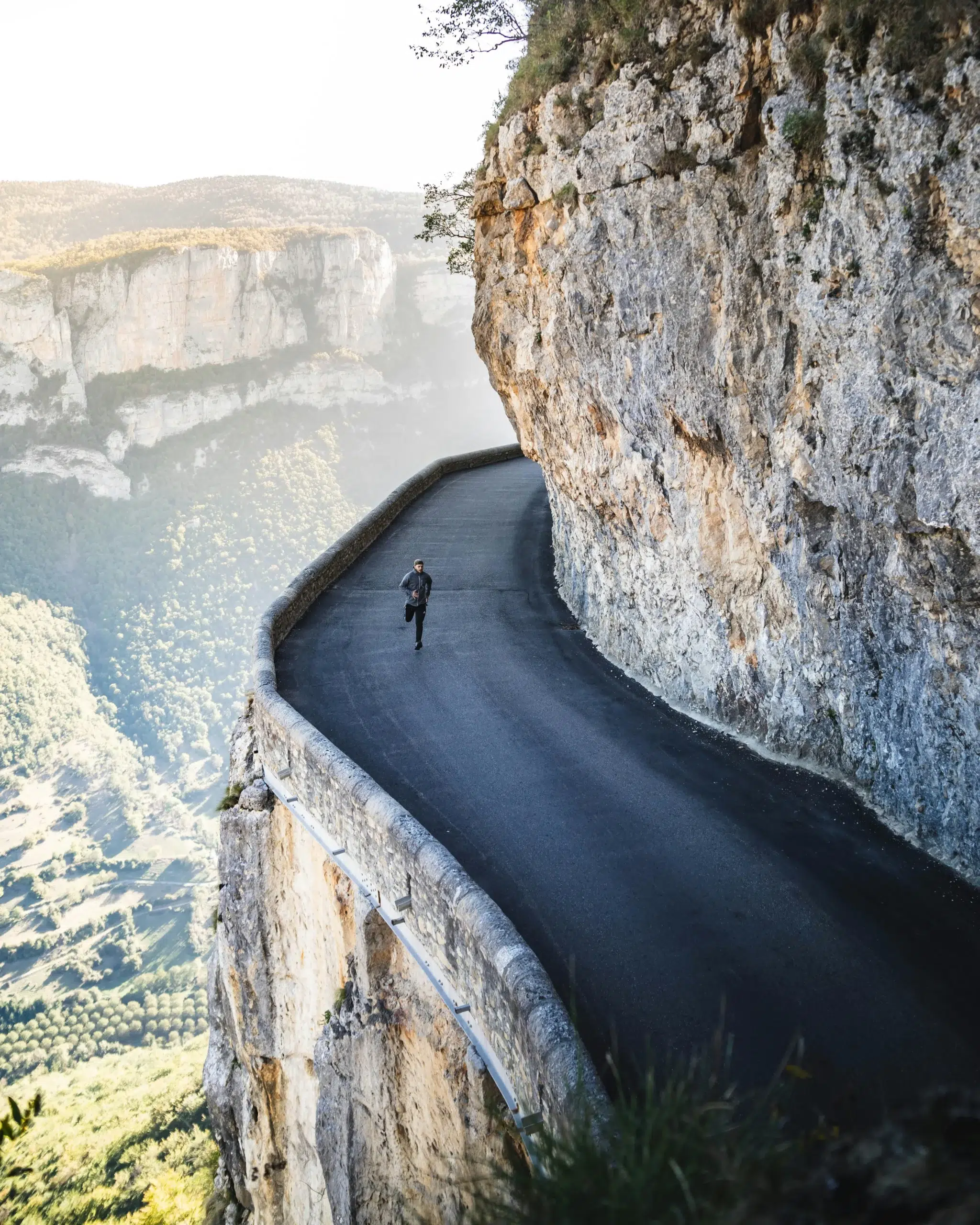 La route spectaculaire de Combe Laval, route taillée à même la falaise