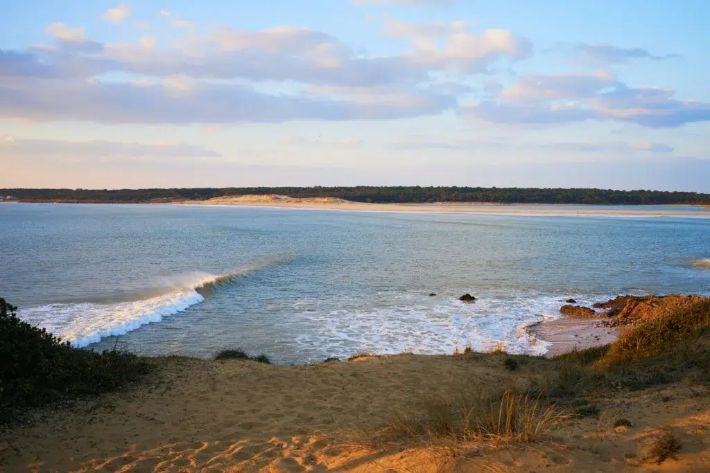 Nichée sur le littoral sud de la Vendée, face à l’île de Ré, La Tranche-sur-Mer est une station balnéaire célèbre pour son ensoleillement remarquable, ses plages de sable fin et ses spots de surf réputés. On la surnomme la « petite Californie » vendéenne. Vous pouvez parcourir la forêt domaniale à vélo, explorer la lagune de la Belle Henriette à pied ou découvrir le patrimoine maritime au fil des ruelles du village. Ces activités se programment facilement depuis votre camping en Vendée. Ici, la nature dicte le rythme : marées, lumière rasante sur les dunes, envol des oiseaux migrateurs au crépuscule.